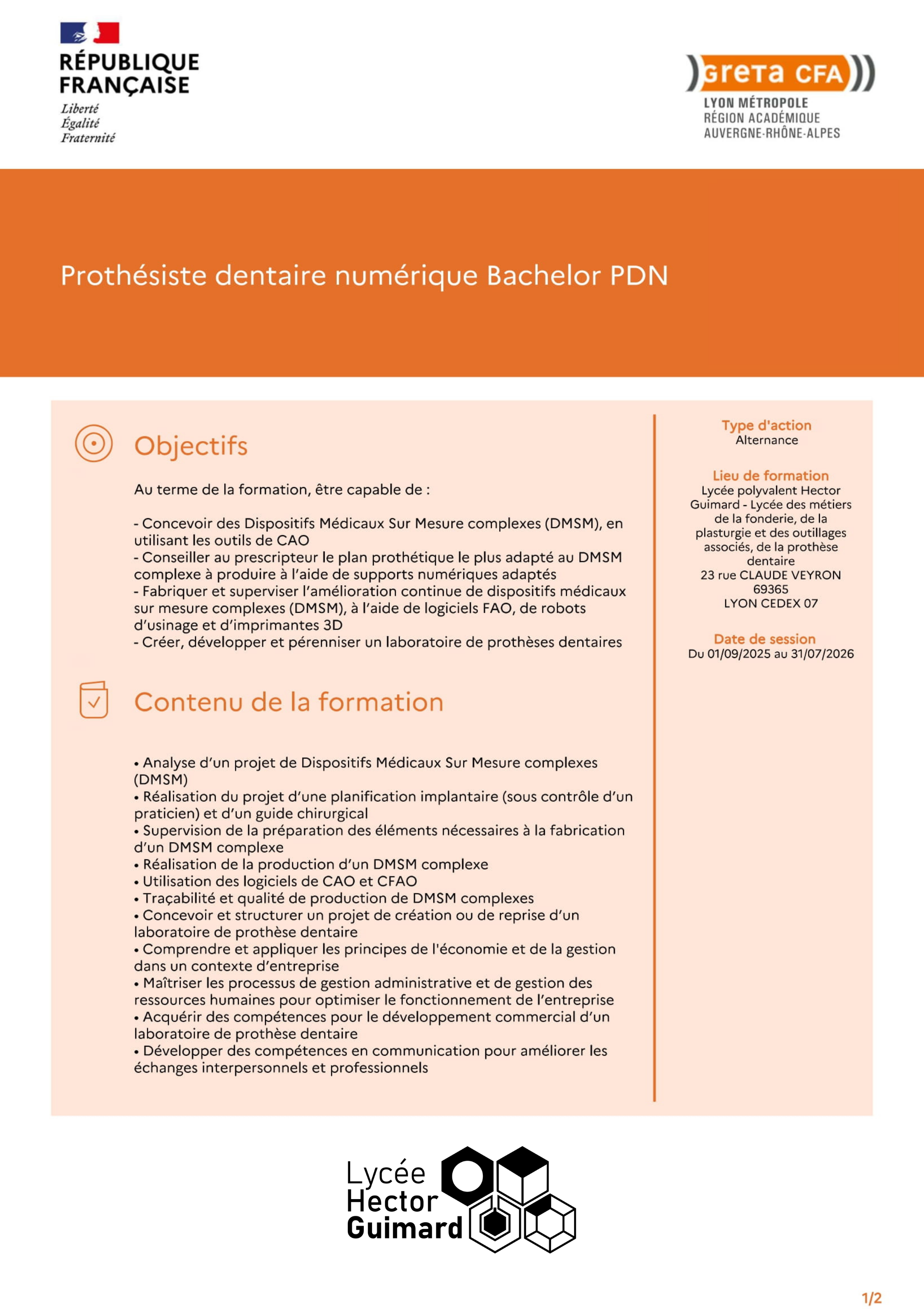 La rubrique Bachelor prothésiste dentaire numérique possède déjà une page d'accueil. Souhaitez-vous la remplacer ?